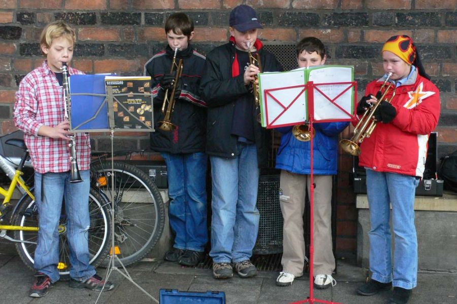 Der Weihnachtsmarkt auf dem Bremer Marktplatz - Musikanten unter den Rathaus-Arkaden