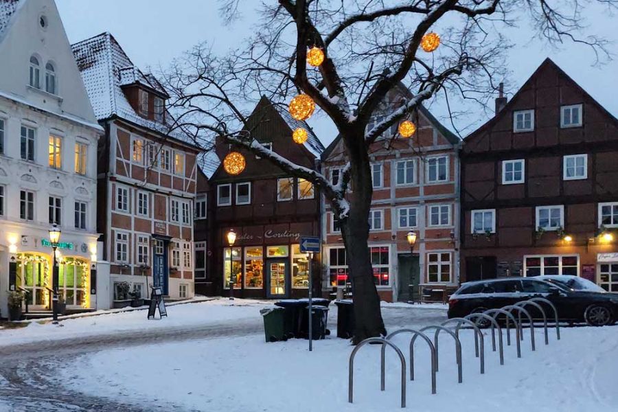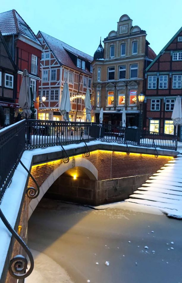 Am Nachmittag wagten wir uns dann auf durchweg glatten Gehwegen, um die nahe liegende historische und idyllische Altstadt der ehrwürdigen Hansestadt im Flüsschen Schwinge für uns zu erkunden.