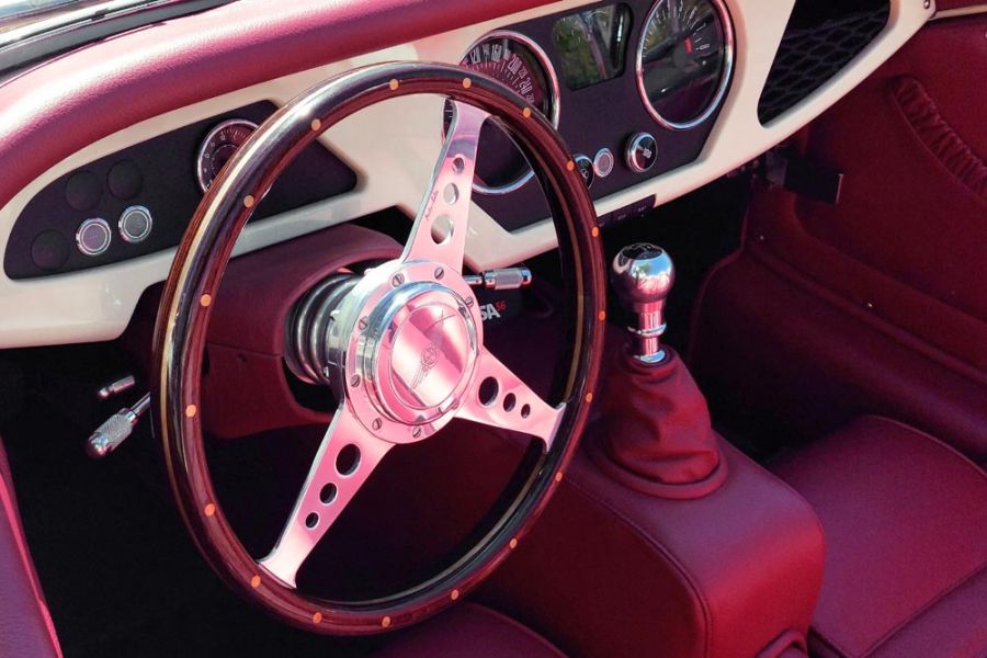 Morgan Plus 8 Roadster im Detail - Holzlenkrad und Armaturenbrett in EdelholzMorgan Motor Company - Morgan Plus 8