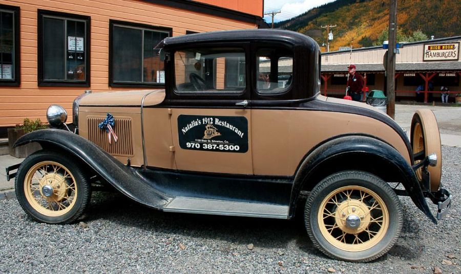 Das Ford A Coupé in Silverton – ‚Anreisser‘ für Natalia’s Restaurant, einem früheren Bordell aus dem Jahre 1912Das Ford A Coupé in Silverton – ‚Anreisser‘ für Natalia’s Restaurant, einem früheren Bordell aus dem Jahre 1912
