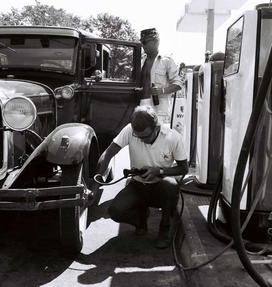 Luft für die Reifen sowie eine 50er-Holzkiste Tuborg Grün für Fahrer und die Beifahrer – mit dem Ford A Fordor Sedan auf der Ferieninsel Bornholm unterwegsLuft für die Reifen sowie eine 50er-Holzkiste Tuborg Grün für Fahrer und die Beifahrer – mit dem Ford A Fordor Sedan auf der Ferieninsel Bornholm unterwegs