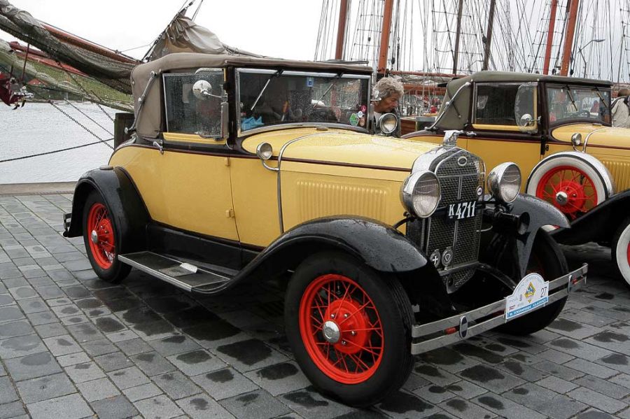 Ein Ford A Roadster mit geschlossenem Verdeck bei Schietwetter am Museumshafen EckernfördeEin Ford A Roadster mit geschlossenem Verdeck bei Schietwetter am Museumshafen Eckernförde